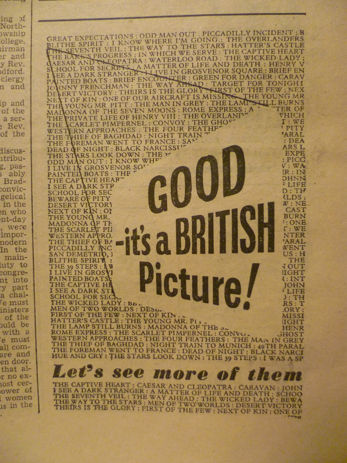 “The other film on my list, though it can’t yet be seen, is shown to every American soldier landing in England and has the official blessing of the M.O.I. Tells, in a very lively and endearing manner, the best way for Americans to take the English. Pub etiquette, the rations problem, scars of the Blitz, English grouchiness and hopes for future; a brilliant little elucidation of character, with Burgess Meredith interpreting the good and the bad American, and Bob Hope and Beatrice Lillie at their dazzling best. There aren’t so many friendly and helpful films about that we can afford to have this one buried in the files of the American War Office.”*